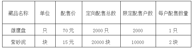 2、 根據投資人開戶的時間先后順序進行配售。1-2000名配售《雄鷹盤》,2001-12000名配售《紫砂泥》。